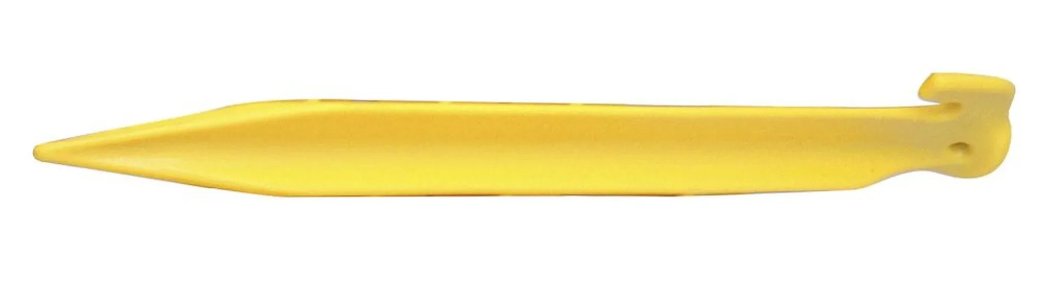 Dank der leuchtend gelben Farbe lassen sich die Heringe auch bei schlechten Lichtverhältnissen schnell erkennen. Das ABS-Material macht sie langlebig und wetterbeständig.