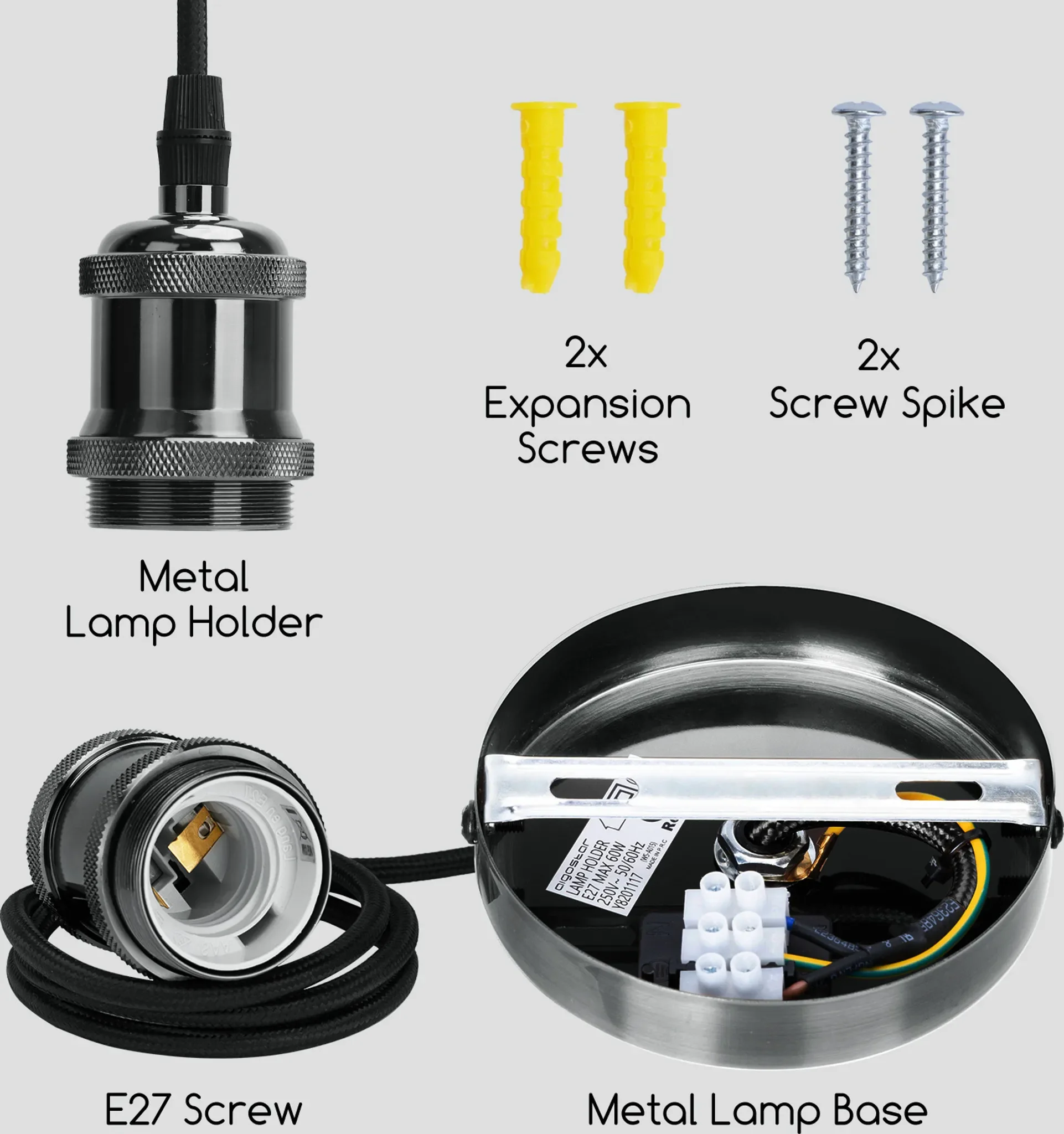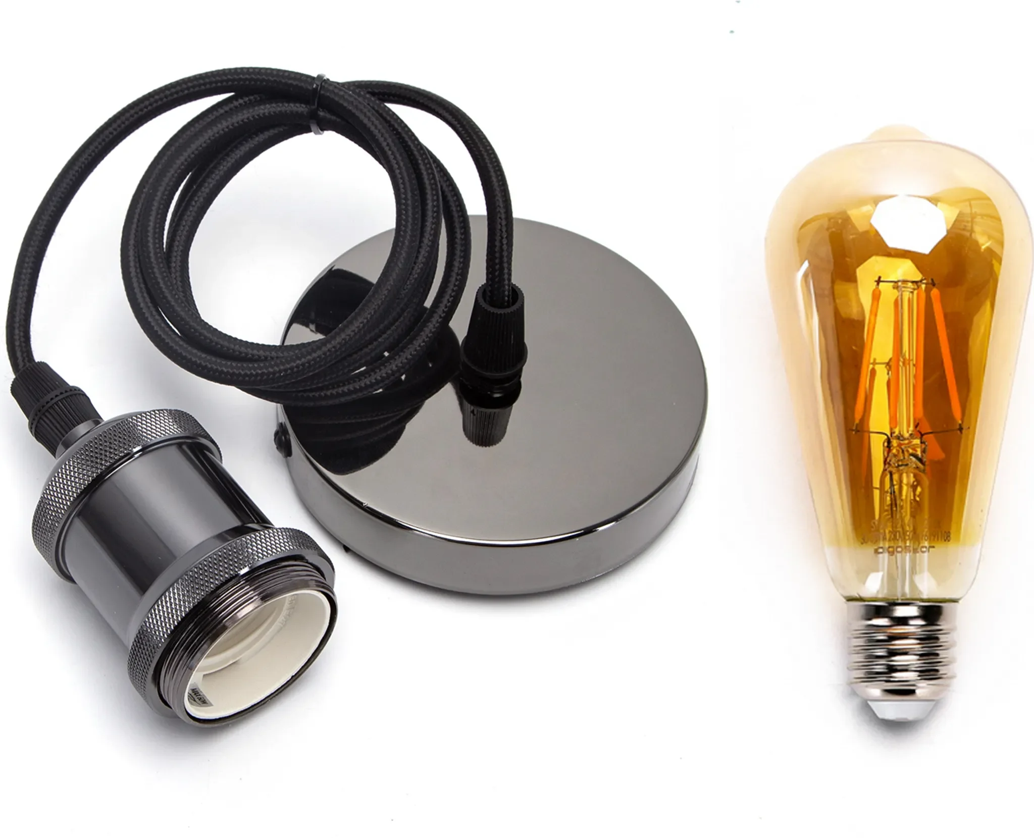Produktinformationen "E27 Lampenfassung Pendelleuchte – Vintage Retro, perlschwarz"
