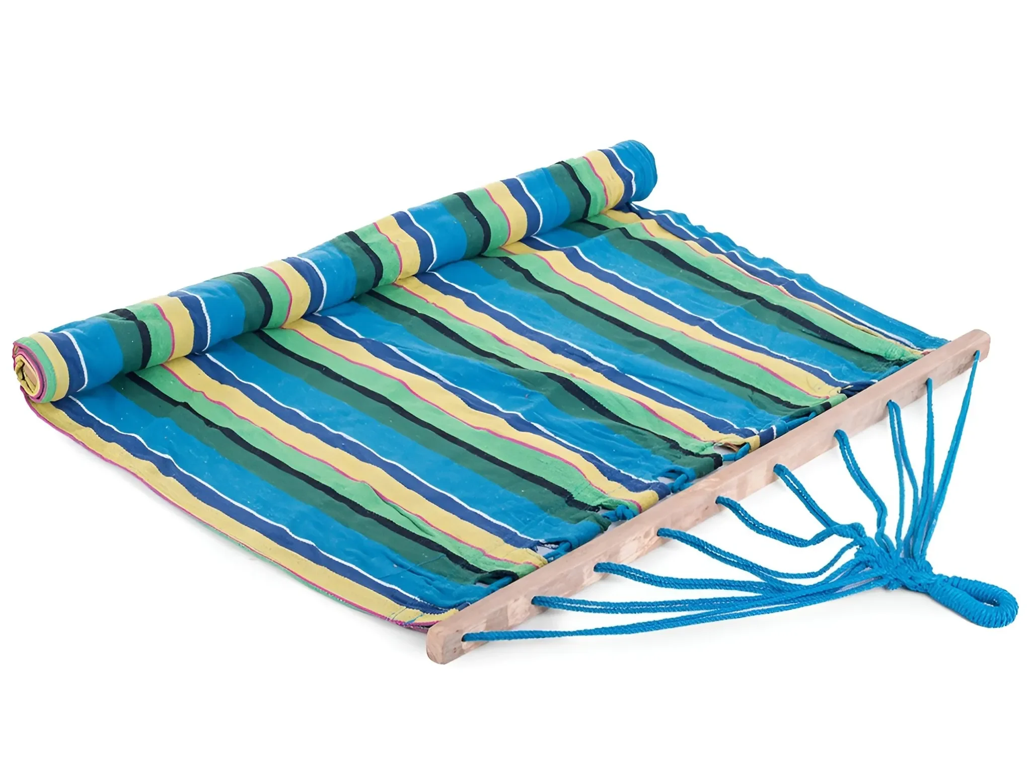 Zwei integrierte Holzspreizer sorgen für zusätzliche Stabilität und erleichtern das Ein- und Aussteigen. Die Hängematte lässt sich kompakt zusammenrollen, nimmt wenig Platz ein und ist dank der mitgelieferten Befestigungsschnüre schnell und flexibel montiert.
