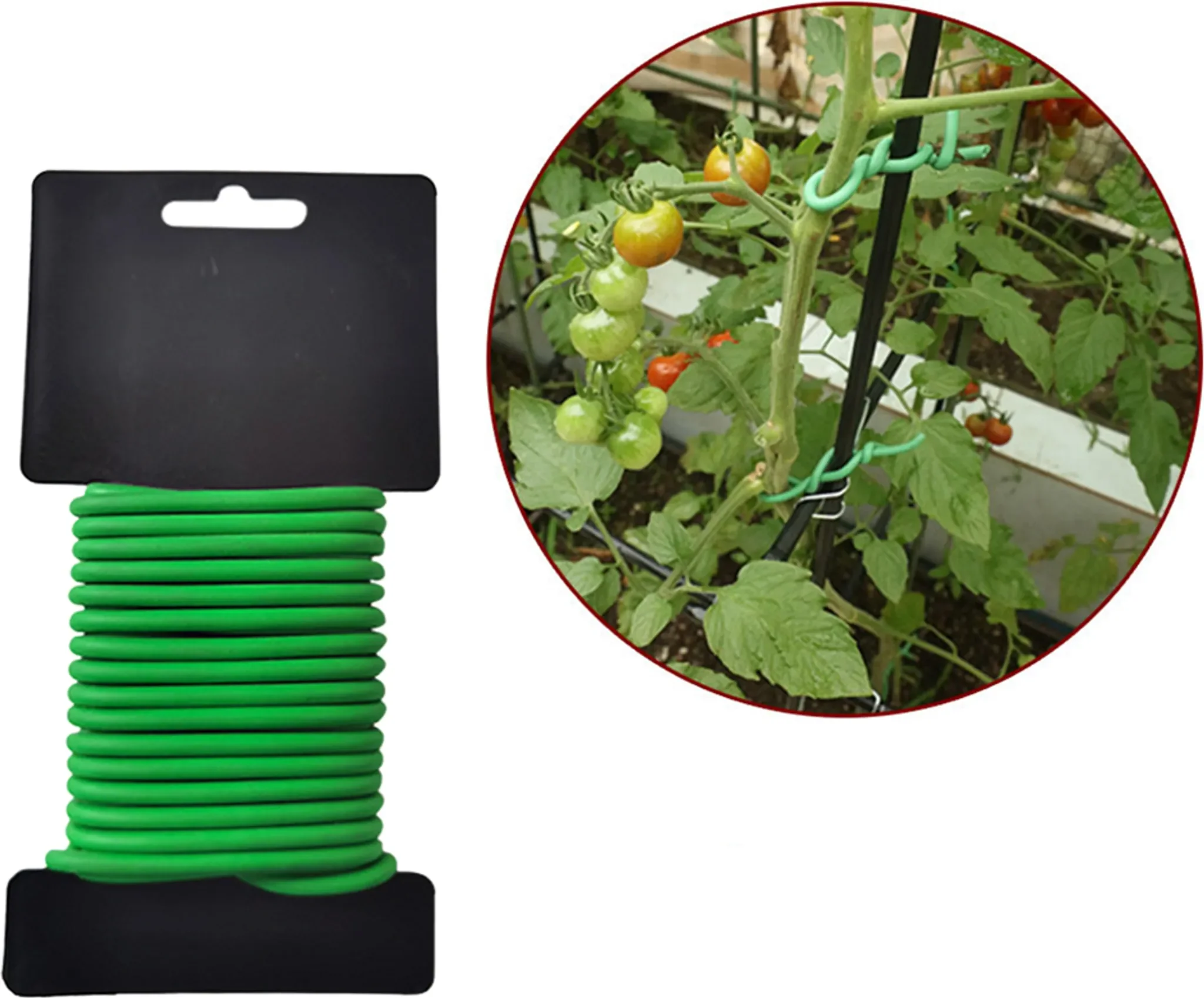 Der grüne TPR-Pflanzdraht ist ein weicher, flexibler Pflanzenbinder, der ideal für Tomaten, Rosen, Reben und andere Gartenpflanzen ist. Mit einer Länge von 10 m und einem Durchmesser von 2,5 mm eignet er sich hervorragend zum Stützen, Ordnen und Fixieren von Pflanzen.