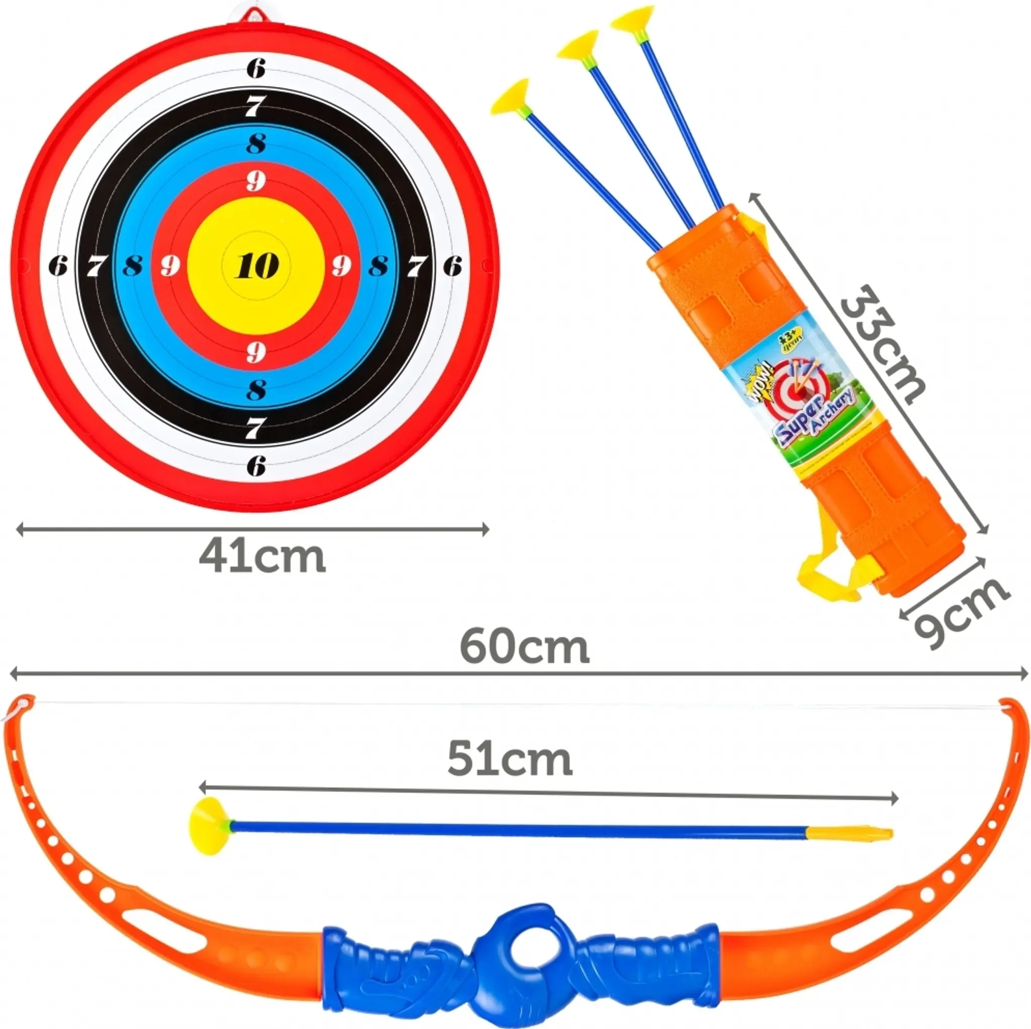 1 × Kinderbogen 1 × Zielscheibe 1 × Köcher 3 × Pfeile mit Saugnapf |