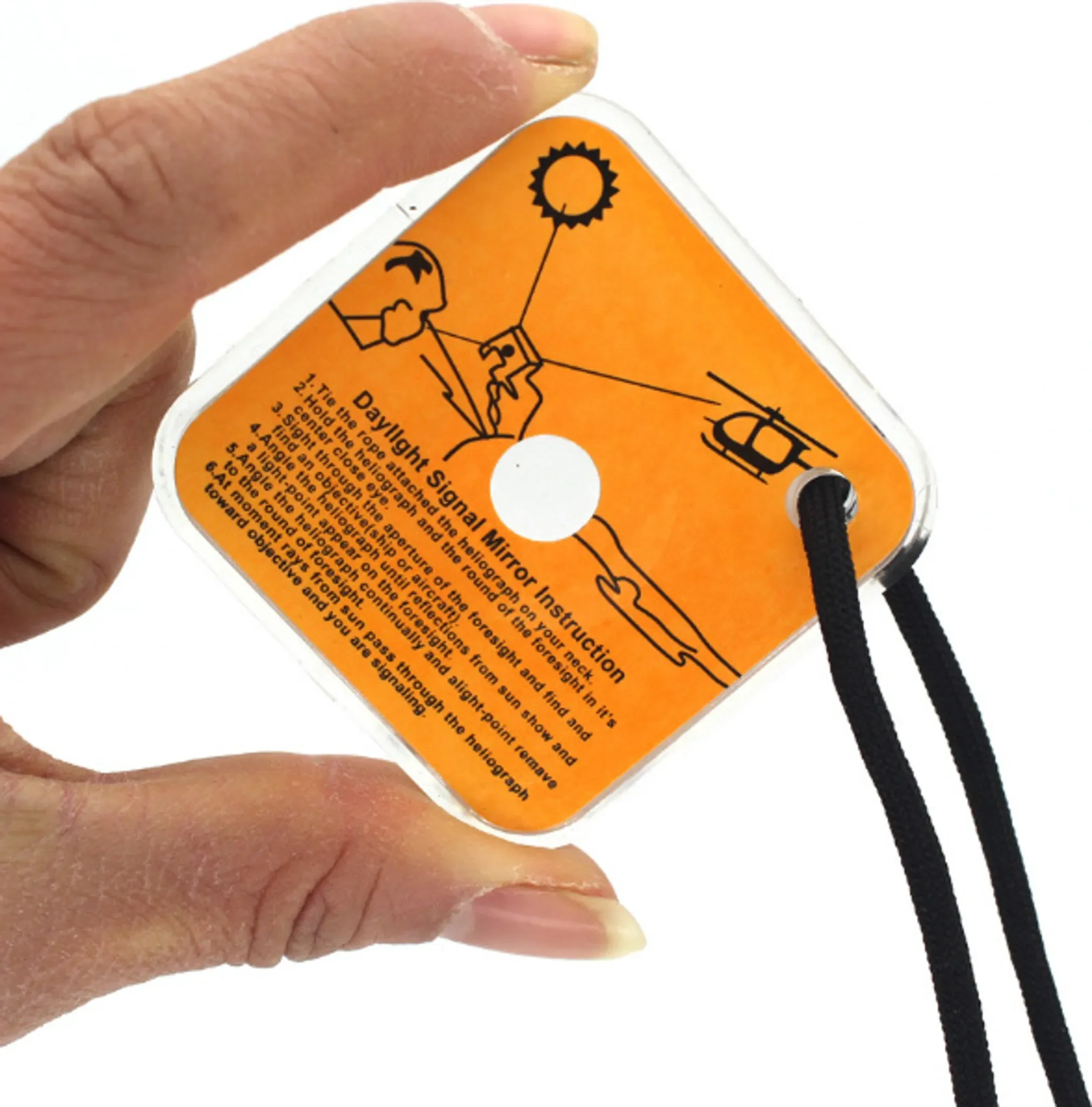 | Im Paket | 1 × Survival-Signalspiegel mit Notfallpfeife und Seil |