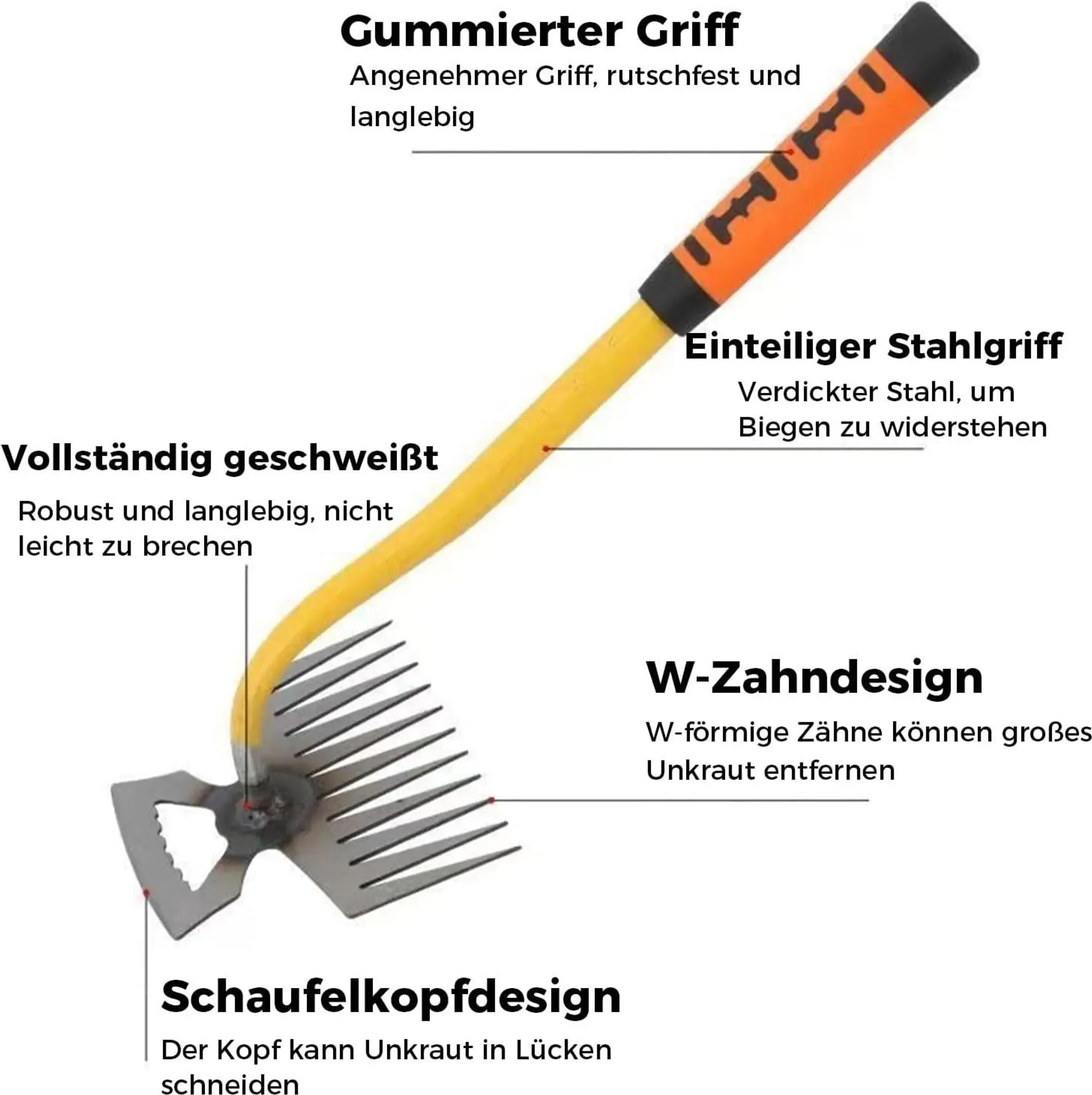 Hochwertiges Edelstahlmaterial • Ergonomischer Griff • Effizientes Jäten