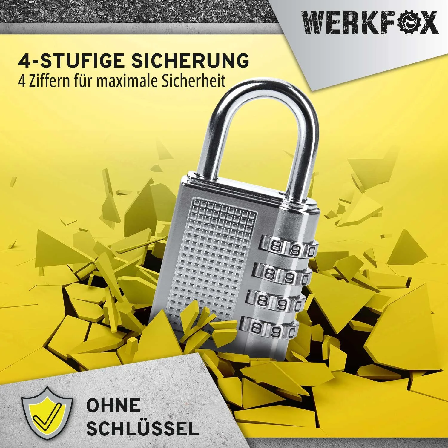| Set-Inhalt | 1 × Zahlenbügelschloss mit 4-stelligem Zahlencode |
